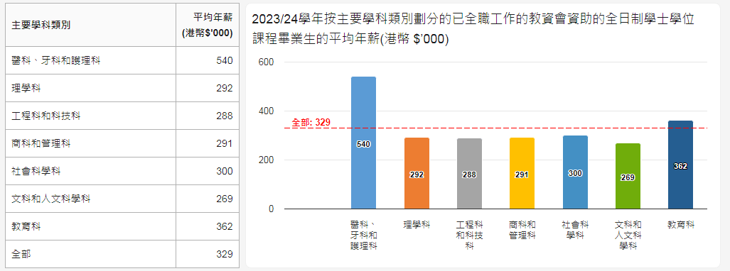而在专业/学科方面,一向被称为“神科”的「医科、牙科和护理科」专业,其2023/24学年香港八大本科毕业生的平均年薪以54万元,即月入4.5万,位居所有专业/学科之首!