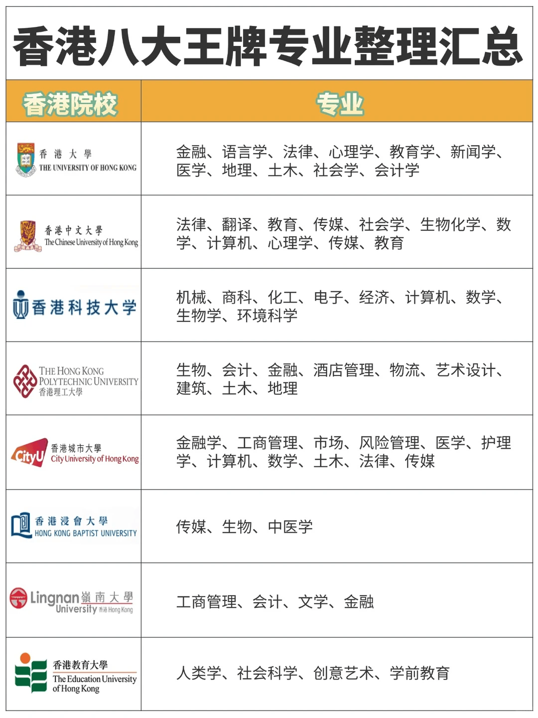 别慌!今天就给大家整理了超全香港本科专业选择攻略,按学校划重点,帮你准确定位,选到zui适合自己的好专业,留学不盲目~